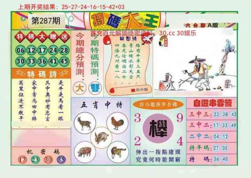 287期:凶美+两肖凶丑+蛇兔╣开:猴34中